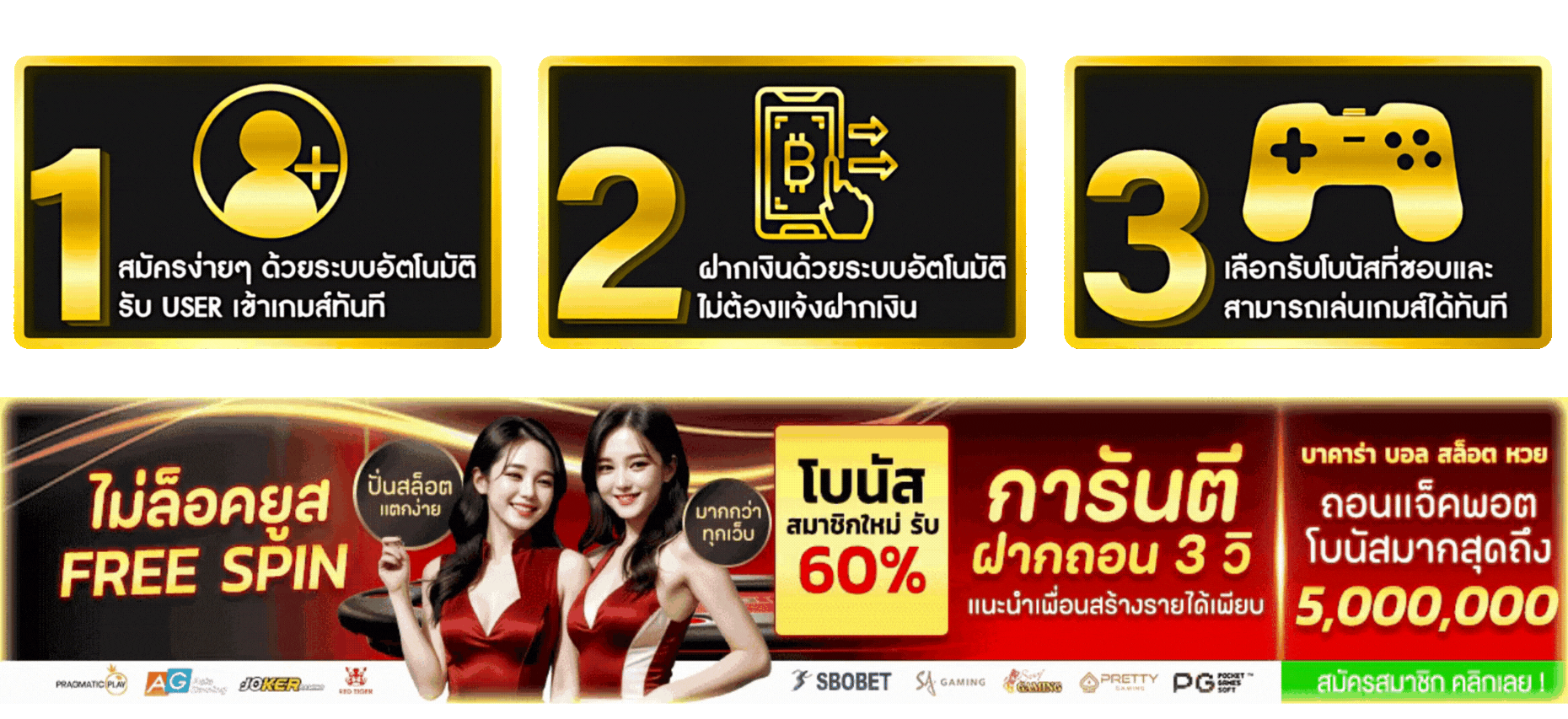 ตอบ : - ระบบฝาก-ถอนอัตโนมัติ 24 ชั่วโมง ทำรายการภายใน 30 วินาที รองรับทุกธนาคารและ True Wallet ไม่มีขั้นต่ำ